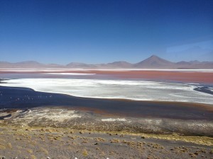 Personally my favourite part of Bolivia was the Salar de Uyuni and the surrounding landscape. Expansive, blinding white salt flats, pink and green salt lakes, curious rock formations and immense volcanoes somehow provide a bizarre 4 day jeep journey and somehow make geology interesting.
