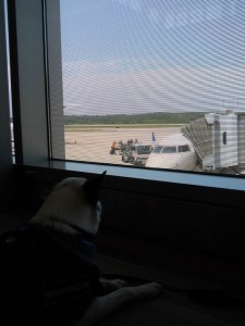 When at your gate; take advantage of pre-boarding. You can get yourself and your animal settled before the wave of other passengers. I take along a small blanket to place on the floor so she doesn’t leave fur behind. It’s also good practice to find out if the fellow passenger beside you likes dogs once they sit down. I’ve personally never had an issue with anyone not.