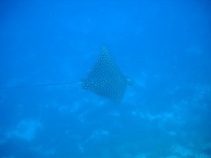 Immediately after learning to scuba dive in Utila, I hopped on over to nearby Cayos Cochinos (Hog Islands). Some of the small islands and cayes that make up Cayos Cochinos resemble one of those ‘paradise island’ posters that bored office workers paste on their cubicle walls to remind them of the next holiday they’re working towards. You know the ones. Chalk white sand at their perimeters and a couple of lonely coconut trees with an obligatory hammock slung across them. The waters are clear turquoise and the shallows hint at the abundant marine life that abounds in the deeper waters. Bait fish flit around as spotted eagle rays glide past. At night queer bio luminescent creatures twinkle in the inky waters creating a bizarre light show.
