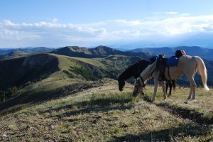 My two horses stop for a snack along the Continental Divide Trail in Montana/ photo/ Lindsey Rue
