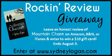 To say thank you, I'm offering the Rockin' Review Giveaway through August 3. Leave an honest review of Mountain Charm on Amazon, B&N, or iTunes and you will be entered to win a $10 gift card to any of those online retailers. If you've already posted a review, that...