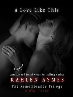 Kahlen Aymes is unveiling the cover of the third and final installment of her Remembrance Trilogy, titled A Love Like This. She's also giving away the first two books of the trilogy - The Future of our Past and Don't Forget to Remember Me (in any ebook format) and an advanced copy of A Love Like This (for Kindle readers only). Check out the Rafflecopter at the end of the post to enter!