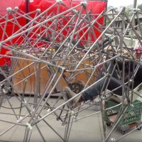 Adam struggles to complete his rendition of a human-powered "Strandbeest."