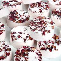 As these bath bombs fizz, the rose petals disperse into the water and the lavender scent fills your bathroom. The recipe also has salt to soothe the skin.