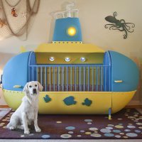 Rob Adams, World Art Lead for the Destiny video games, built this submarine themed baby crib out of fiberglass.