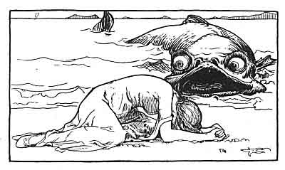 Next day he went to the sea again. The whale came and cast Trembling up on the shore. She asked the boy, “Did you tell your master?”