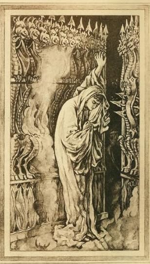 Picture credits: The Woman Who Went To Hell - (artist unknown) frontispiece to "The Woman Who Went To Hell: and other ballad and lyrics" by Dora Sigerson (Mrs Clement Shorter), De la More Press, 1902