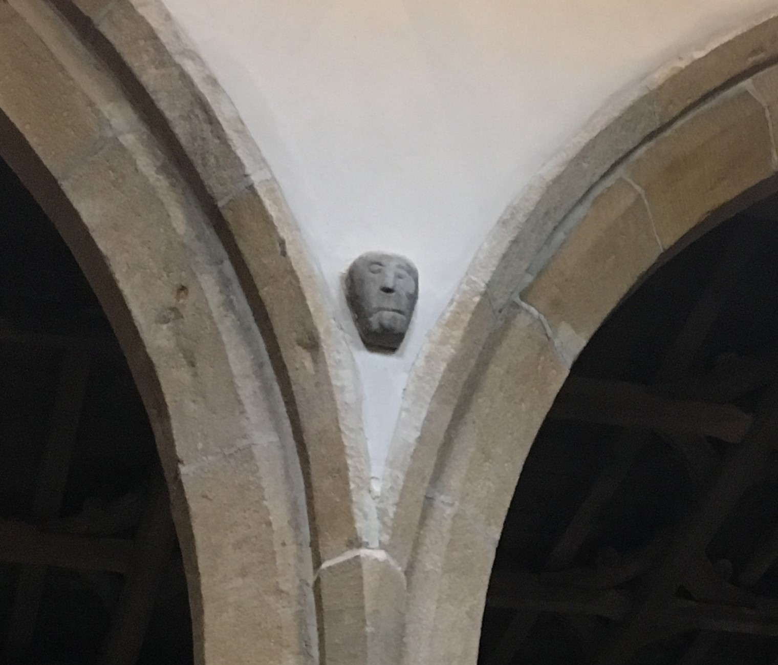 On the same day, heading out of the Dales for Manchester, we stopped to look into the church of St Michael the Archangel at nearby Kirkby Malham. I regard this as my church, the one whose walls I helped whitewash back in the 70’s, the one I was married in, the one where we held my father’s funeral. And looking up I noticed as if for the first time (though I must surely have seen them before) two more archaic or Celtic-looking stone heads placed between the arches. What?!