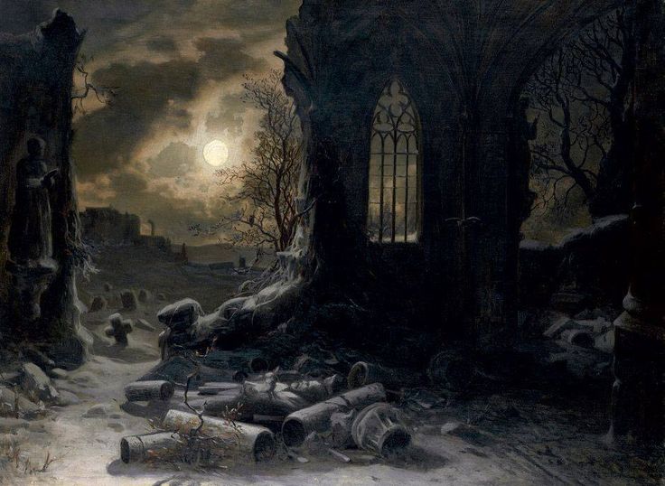 Art: Ruins of a Gothic Chapel by Moonlight, by Felix Kreutzer, 1835 - 1876