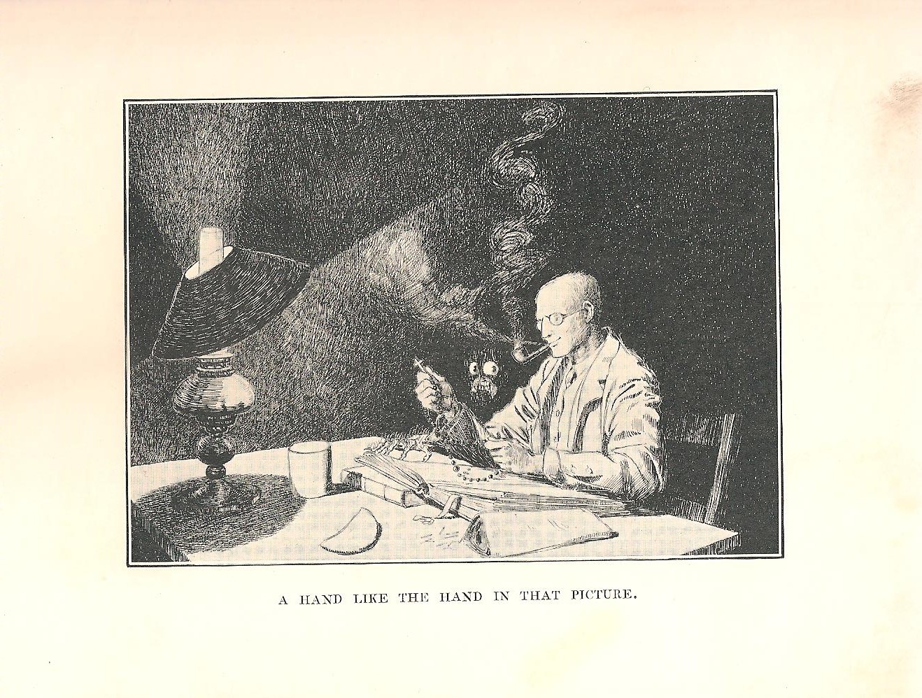 “A penwiper? No, no such thing in the house. A rat? No, too black. A large spider? I trust to goodness not – no. Good God! a hand like the hand in that picture!”