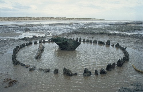 Modern mirrors show perfect reflections. Each one of us knows what we look like (or believe we do: mirrors still pull that sly trick of showing us ourselves in reverse.) But for most of history and prehistory mirrors were rare or non-existent. People saw one another’s faces but not their own. Only the reflecting surface of still water could offer the chance, but how could you be sure that the face looking up was truly yours? Maybe it was an ancestor’s face, or a spirit’s. Maybe it had a message to give you. (But better not bend too close.)A clear puddle after rain is a window into the ground. You can look down vertically into a deep underworld. A far, bright sky flashes below the upside-down trees. Could it be the world of the dead, who are buried in the ground? In the spring or early summer of the year 2049 BCE (it makes me shiver to write that, but we know the precise date from tree-ring dating), at least fifty people with bronze axes gathered on a salt marsh to construct a wooden circle with an upside-down oak stump planted at its centre, roots in the air, crown in the ground. This was the circle now called Seahenge, and surely the inverted tree was intended to grow in the Other World - a real and solid version of the ghostly reflections of trees which can be seen in any pool.