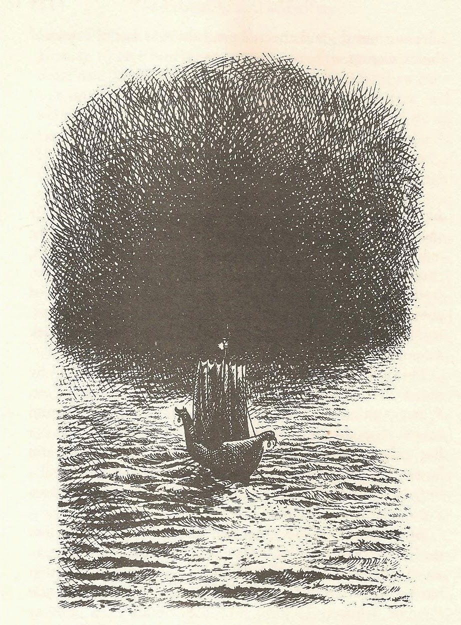 We can tolerate Reepicheep’s disapproval because he’s an animal. He doesn’t understand or share our fears. Nothing stands between him and the best. He is both less than us, and greater. When finally, ‘quivering with happiness’, he hurls his sword into the Silver Sea (like Arthur at the brink of Avalon) and sets off alone in the coracle, swooping up the green glassy breast of the wave to vanish forever over the crest, it still brings tears to my eyes.