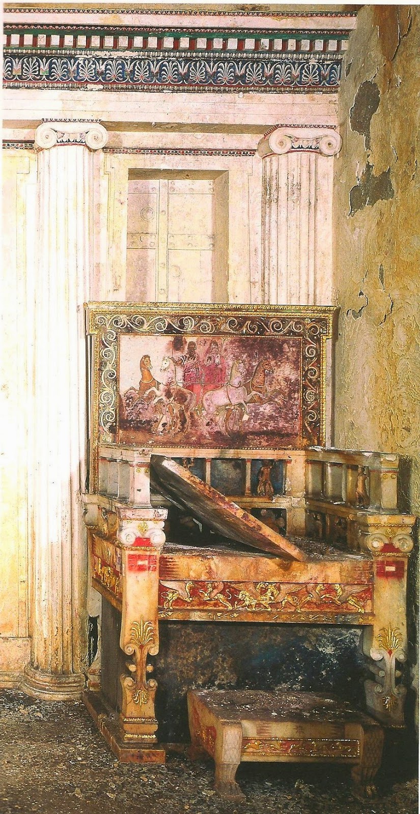 A couple of years ago, I went to see an exhibition of treasures from the royal capital of Macedon, Pella, at the Ashmolean Museum in Oxford. The treasures were dazzling, and the exhibition also included photographs of the lavish interiors and furnishings of the royal tombs of Philip II (father of Alexander the Great) and his family, at Aegae. In the tomb of Philip’s mother, Euridike, was a fabulous chair or throne. On its seat had rested the chest containing the Queen’s burned bones, wrapped in purple...
