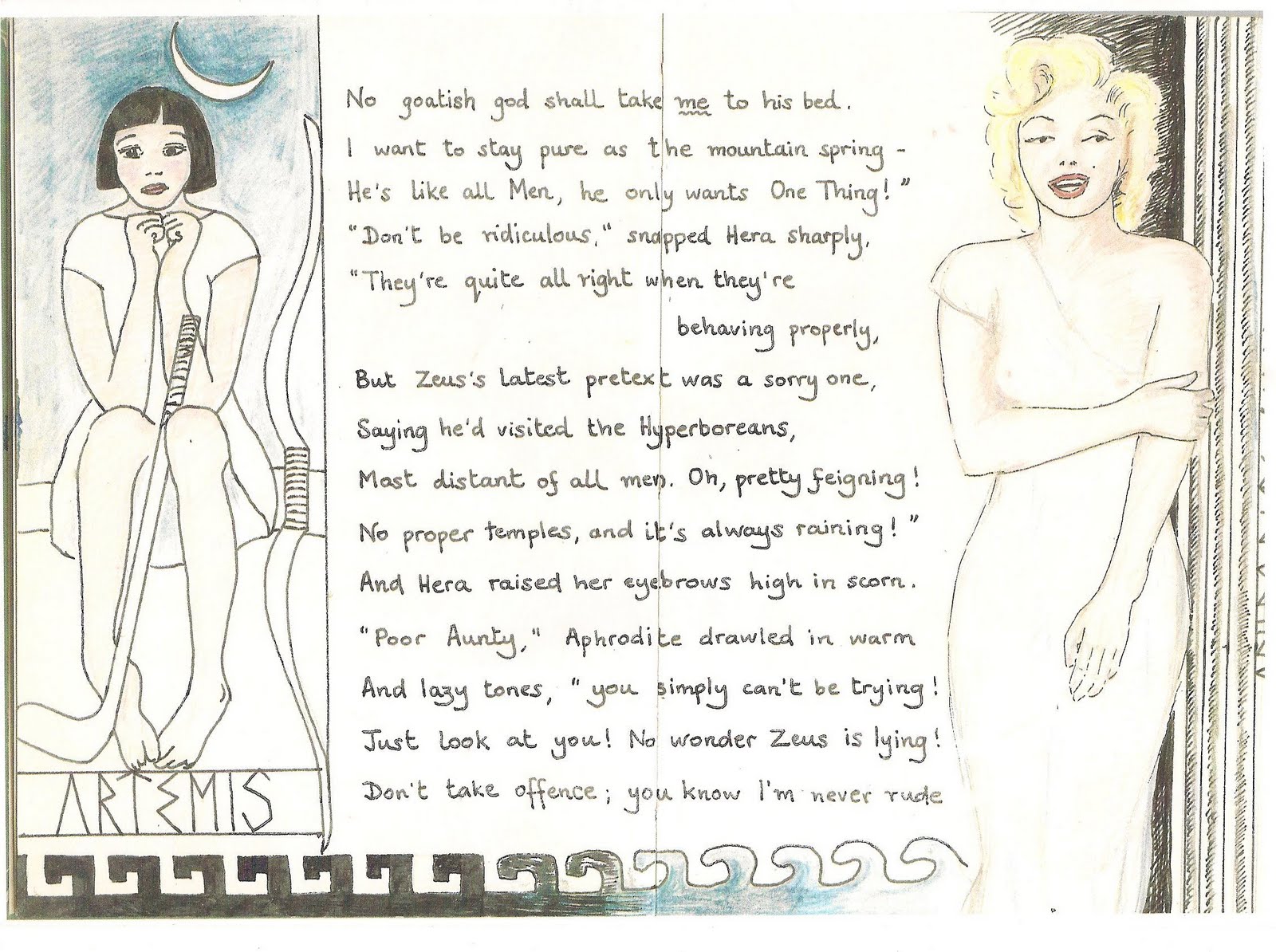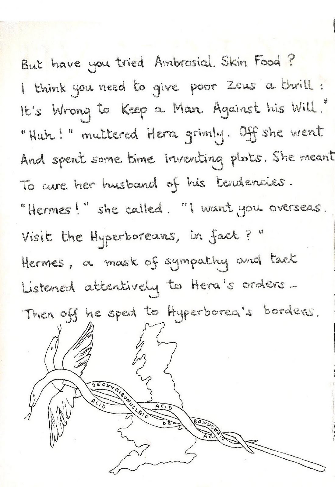 Previously: Furious with Zeus for his continual casual adultery, Hera sent Hermes to the Land of the Hyberboreans to fetch her auld acquaintances the Agony Aunts. NOW READ ON...