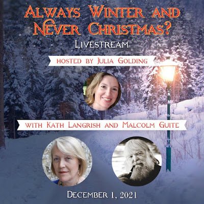 Just a quick post. If you feel like snuggling under a blanket with a glass of mulled wine to listen to writer Julia Golding, poet, priest and writer Malcom Guite, and myself discussing Christmas in Narnia and Midwinter in Middle-Earth, please draw your armchair closer to the fire and click on the link below!
