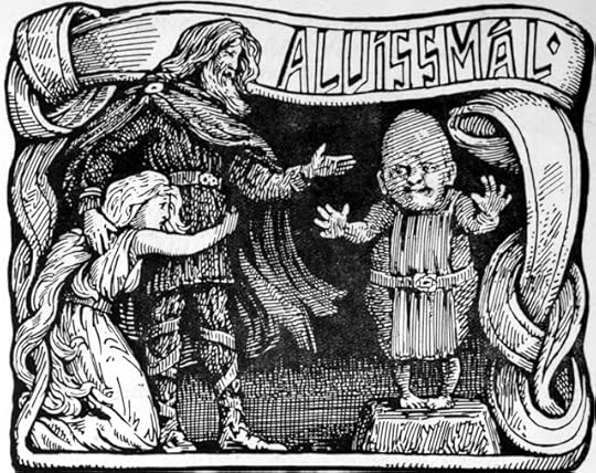 As if to emphasise his deathly character, like a ghost fleeing to its grave at cock-crow, the dwarf Alviss (the story is from the Poetic Edda) cannot endure daylight but turns to stone at sunrise.
