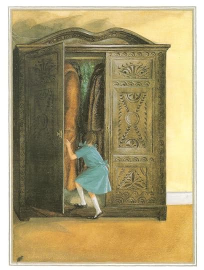 Lucy enters the wardrobe: Pauline Baynes illustration to the deluxe edition of The Lion, The Witch and the Wardrobe (HarperCollins 1998)