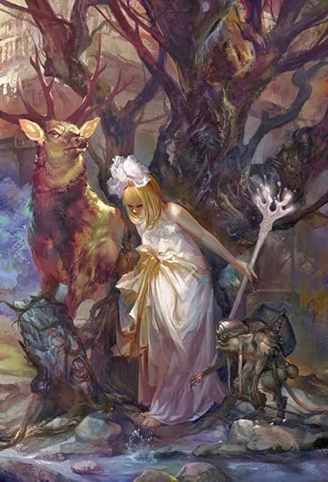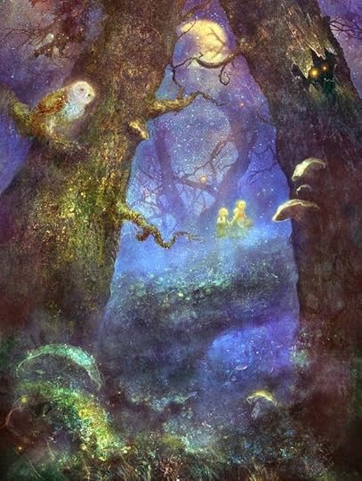 Little Addolgar ap Maelon Gof has wandered into the thick foliage of the Coed Celyddon, lured by the many colored playful lights that he saw dancing and laughing. Now the young dark haired child of ten winters is deep in the mist-shrouded forest soaked in Otherworld energies. A storm is brewing in the dark woods, stirring the trees and causing the limbs and boughs to crack and knock against each other. Owls hoot in their haunting voice and somewhere distant, wolves howl. Addolgar climbs over fallen trees and makes his way in bramble patches trying to get closer to the mysterious lights in the boughs of the trees.