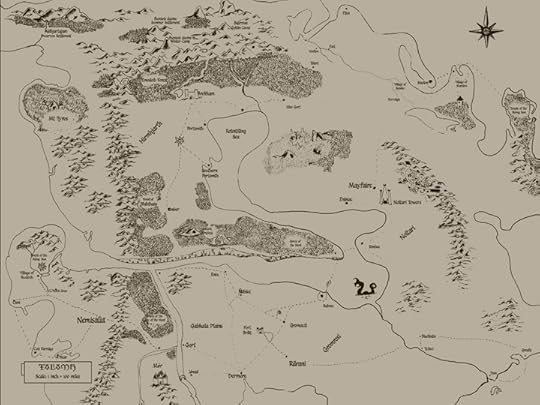 I knew the world was to be faux medieval. I knew it would have elves, humans, giants, dwarves, and fairies. I knew I would want to use Irish words. Talamh is the Irish word for Land or Earth. Daoine is the Irish word for People. I liked the idea that they referred to themselves just as the People. I knew of the Daoine first, in fact, it was only after I decided Orin had run away did I create the city in the South where Orin lived.