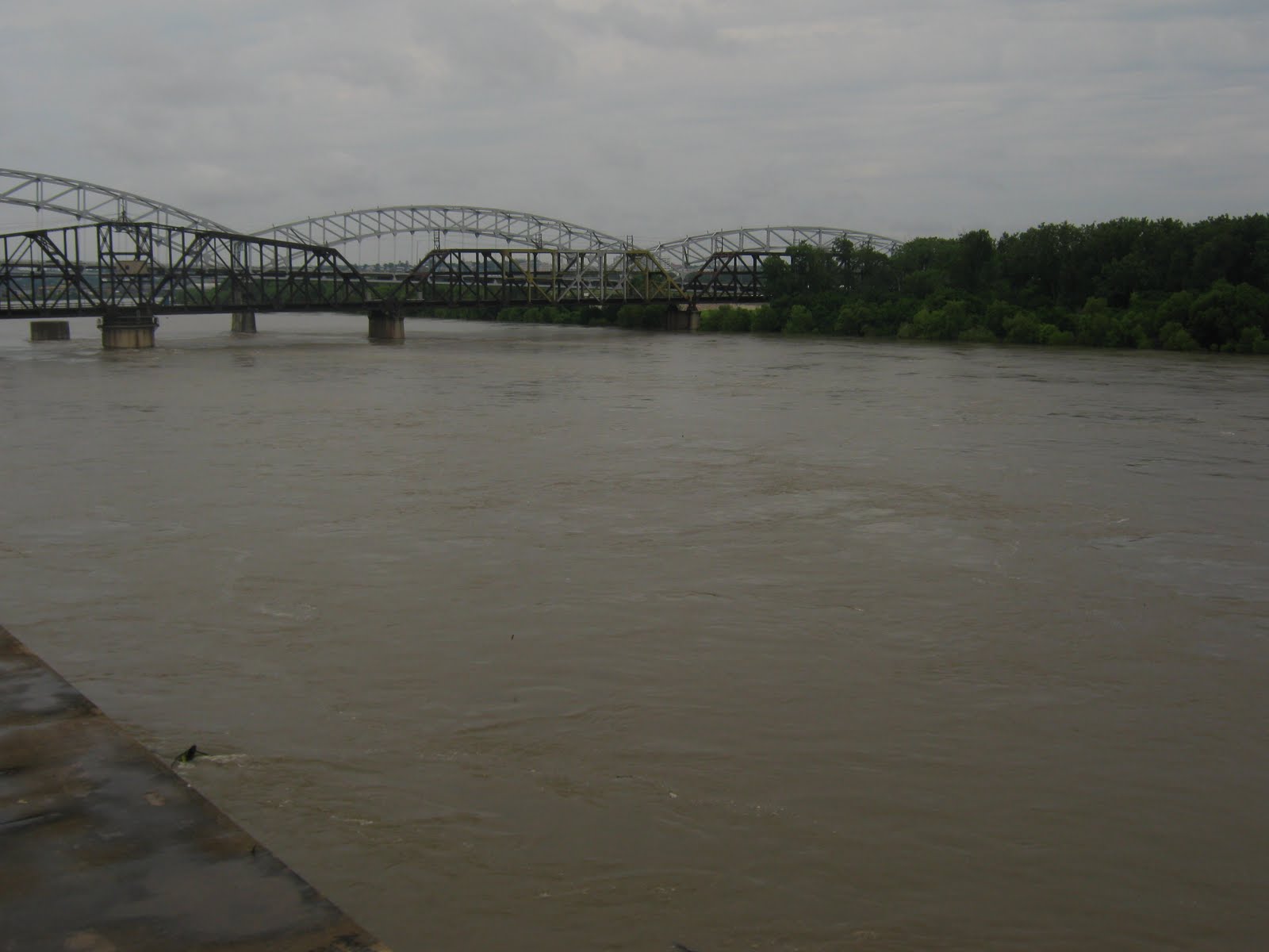 View from the Town of Kansas Bridge of the swollen Missouri River