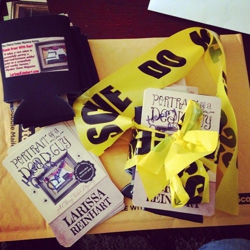 A “Cherry Tucker Mailer” for. Book club. Signed book cards, bookmarks, & Cherry Tucker koozies wrapped in crime tape. This one’s headed to Chicago for my first Skype-in book club meeting! #bookclub #books #bookstagram #bookswag #cherrytucker