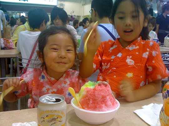 When we lived in Japan, one of our favorite activities was attending festivals. You could count on candy apples, chocolate bananas, takoyaki (batter dipped octopus balls), yakisoba (stir fried noodles), and beer. The kids loved putting on their yukata (cotton kimono) and trying their hand at the games. [image error] Kid Tai floatThe big festivals have some kind of special significance, usually related to Shinto rites. For example, on the Expat header you see the giant fighting Tai (Sea Bream) fish from the Toyohama Tai festival.