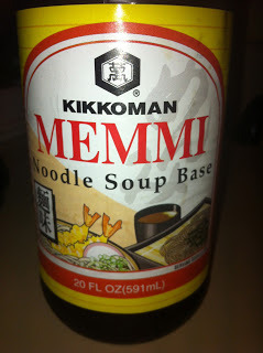 Noodle Soup BaseWhat makes the noodles so simple to make is the sauce. Noodle soup base sauce added to hot or cold water makes many Japanese soups and sauces. This stuff rocks. You can find this soup base at most Asian stores and some large supermarkets. Just mix the base with water. Of course, you can always make the sauce yourself with soy sauce, mirin, sugar, and dashi stock -- but why? If you're into cooking the hard way, here's the recipe from JustHungry.com. JustHungry recipes are yummy, but even she says the simplest way to make these noodles is to buy prepared base.