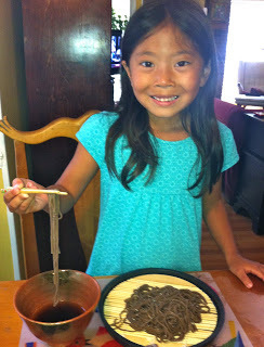 So I make them Zaru Soba, cold soba buckwheat noodles, and everyone's happy. It's simple and fast (yay for me) and satisfies the little foodies. Win-win.
