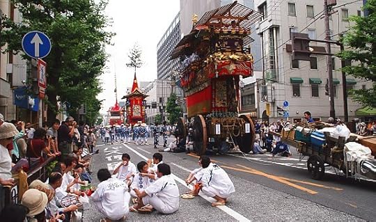 The Gion festival floats in KyotoThe neighborhood festivals often times have an activity attached. Our local festival had a kind of scavenger hunt where we had to answer questions at different stations for a prize. We won shrimp crackers. The girls were pleased. I was hoping for the big money win: a bag of rice.