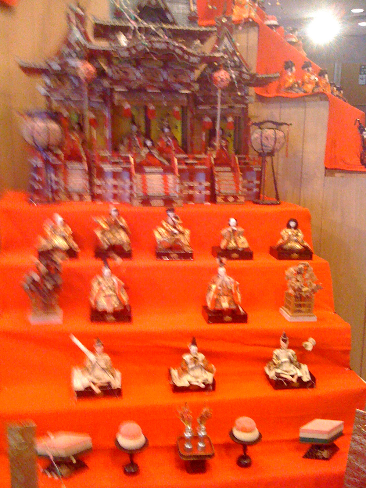 A well attended Hina Ningyo courtWe found our Emperor and Empress set and a couple pieces of lacquer furniture at a flea market. I was probably more entranced with the furniture than my young daughters. The drawers open and shut. The craftsmanship is remarkable. Our daughters love the dolls. Unfortunately we weren't farsighted enough to buy two sets, so a fight may ensue when the little chickies fly the nest and want to take the dolls with them.