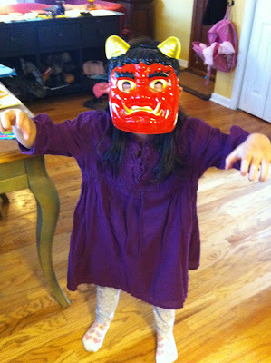 we made due with popcorn this yearLast week in Japan, they celebrated Setsubun, one of our kids' favorite holidays. It's a spring rite that involves throwing roasted soybeans at someone in an Oni demon mask to cleanse your house of bad spirits and usher good tidings in for spring.