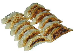 Like many foods in Japan, gyoza was imported from China and modified for the Japanese palette. We call them potstickers in the U.S. Similar to a ravioli, they are thin dough stuffed with filling, usually pork and vegetables, pressed to close and cooked. Chinese pan-fried jiaozi (guotie) tend to have thicker skins than Japanese gyoza and the fillings are slightly different, particularly the use of garlic in Japan. This particular form of dumpling is panfried and then steamed to finish, hence the translated name potsticker.