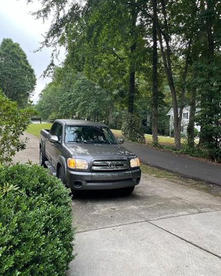 And there she goes back to school… Off in her daddy’s old truck like a little Cherry Tucker minus the goat. 😂