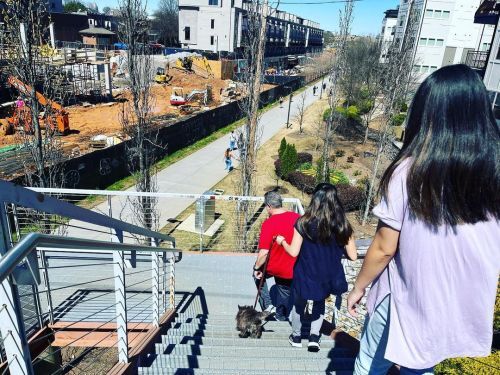 Biscuit’s Saturday stroll on the Beltline. Not of fan of grated...