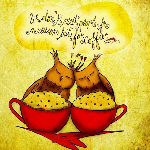 #owls love coffee by Jennifer R. Cook http://www.catsinthebag.com/