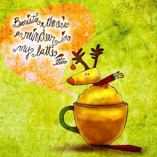 "Barista, there’s a reindeer in my" by Jennifer R. Cook catsinthebag.com