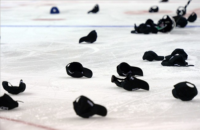 He threw his shoulder to the right, pulling me that way. I knew as soon as I moved in that direction it was a mistake. Ron’s deke was brilliant. I had hardly any time to recover, so I planted left skate to pipe and spread my legs wide, jamming my right skate into the iron as well. The puck bounced off my toe, rolling back at Plassy. He jumped on the rebound and took another shot. I threw my blocker up. The puck flew back over my head and down the back of the net. Play was whistled dead. I sat there on the ice, stunned that I’d pulled those two saves out of my ass. The Cougars fans were cheering my name. I couldn’t see Shaun from where I was seated in the crease, but I hoped he had been somewhat impressed.