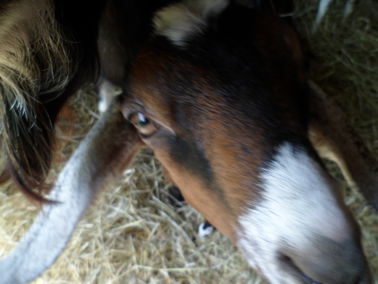 Finally, to top off the critter shenanigans, the same night Mister and I are getting ready to go to the movies, my breeding buck, Perseus, decides to snap off a horn scur.
