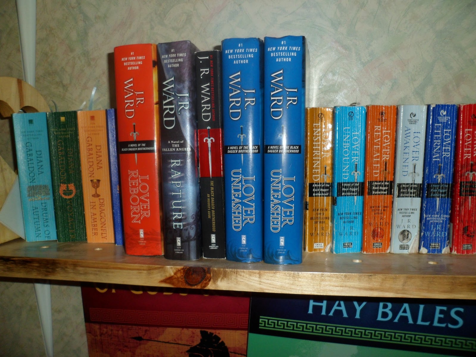 Yep, those there are my oft-read and many times drooled upon Black Dagger Brotherhood books. Over the years I have read many a paranormal romance, but no one does Para-Rom like The Warden. What`s that? There are two copies of Lover Unleashed? Well, yes there is. One is the reading copy; the other is personalized by the great one, J. R. Ward, herself. The personalized one is never to be read. It is only to be taken down on high holy days, opened carefully, and then placed back after a loving glance at the autograph.