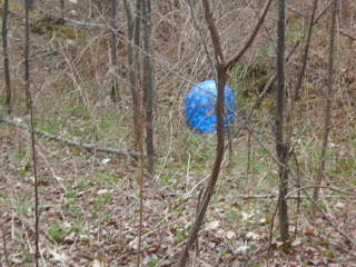 I will confess to having amazing fictional conversations while I walk. Generally, it's just my dog Maisy and me, so talking to myself in two different voices doesn't get me weird looks aside from the squirrels but who cares what they think? During a walk last week, I happened to glance to the left and saw something lying behind the lone house at located at the end of the road that weaves and climbs through the state woods. As soon as I saw this item lying tucked among some skinny saplings, a light bulb went off. I yanked out my camera and took a snapshot, which I now have in my file for my next Lake Erie shifter book.