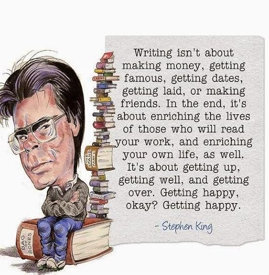 So now that we have some of Uncle Steve`s wisdom, let`s talk about you and me. Why did you start writing? I can tell you why I did. It was because I wanted to silence the voices in my head and make someone's day a little better. That`s it. Those were my two main reasons for writing my first book. I just wanted to make a reader happy. I still do. That is what drives me. The need to share this great story (or at least I think it`s great) with other people.