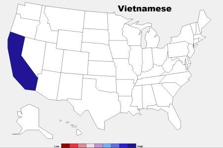 I’m a little surprised about Hawaii, but that’s what the data shows. Now, how about some smaller, more recent immigrant groups? Here’s the Vietnamese: