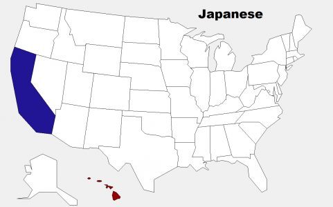 Last, but not least, are the Japanese. Once again the numbers are small, but they register in two states: Hawaii and California. I think the numbers would be bigger if I used another method of counting than names, because in my experience many Japanese-Americans named their children with traditional American names, especially since the 1930s when Japan was looking like an enemy.