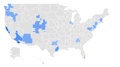 If you read this blog, you’ve seen a couple of posts about my new electric SUV, the Volvo XC40 Recharge. I got curious about where the car would be most popular. Of course I was pretty sure California would be a hotspot since it has very “green” policies and mild weather ideal for EV batteries. So I checked Google Trends for a 7-day stretch. The map below shows where there were searches on that specific model. The darker blue areas mean more searches.