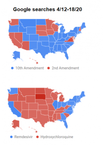Google Trends – Remdesivir v. Hydroxychloroquine, 10th Amendment v. 2nd Amendment