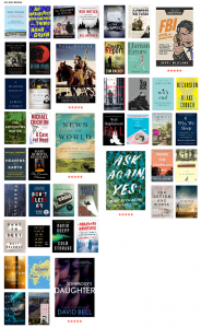 Goodreads has a nifty little feature that I enjoy. It provides its members with a list of all the books he or she has read during the year. It also creates a photo montage of the covers. They say I read 45 books over the year. I believe that’s how many reviews or ratings I posted. The reality is that a few of those I never finished or merely skimmed, On the other hand there are probably at least a dozen that I started and didn’t like enough to keep reading, and never posted or rated them, so the number is a loose one. Below is the photo montage reorganized a bit.