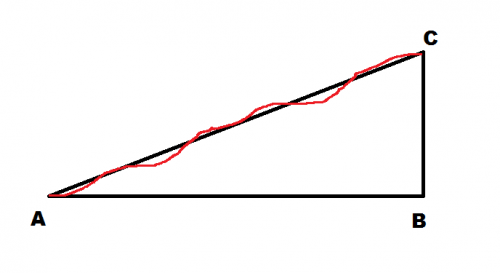 Consider the following cross-section where C is the mountaintop and A and B are the valley floor.