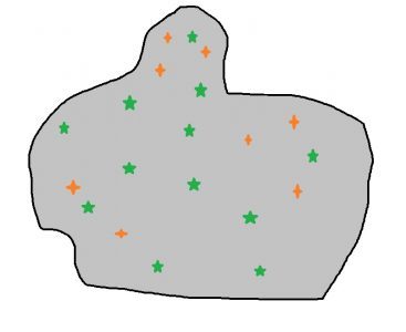 Here are three examples to illustrate why it’s important. Assume the state in the drawing has five congressional seats and two parties we’ll call orange and green represented by the 20 icons. The voters are 60% green (12 icons) and 40% orange (8 icons) distributed as shown.