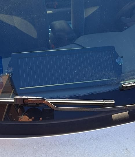 Another concern, as you can see from the photo, is that the car tends to get very dusty. I think the dust comes from the blacktop they use to coat the parking lot, since it’s the only explanation for why my car keeps getting covered in sooty black dust when I drive it so infrequently. That could reduce the light the panel receives, so I’ll have to remember to wash the window more often.