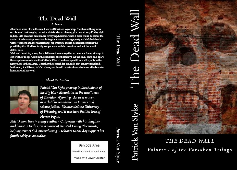 To that end, Patrick has published numerous short stories and has finished the Forsaken Trilogy. This 300,000 word work is set in Patrick’s home town and tells the tale of a teenager on the brink of manhood who learns that the barrier between the living and the dead has begun to collapse, forcing him into a conflict that could lead to insanity, death, or the betrayal of everything he holds dear. The Forsaken Trilogy is made up of THE DEAD WALL, THE BETRAYAL GATE, and THE FINAL SACRIFICE.